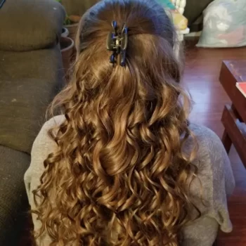 I think this is the coolest curling iron ever! No burning yourself, and really easy to do. Easy to charge, and I love it. It's great if you have kids too. I can see myself curling my daughter's hair a lot because there is less risk to burn. You get lovely little spiral curls. I love it. I can easily see myself putting this in my purse and taking it with. I love it. I love that this is effortless. I hate curling my hair manually when I straighten it.