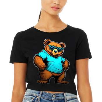 Stylish Women’s Dog Print Cropped T Shirt with “Surf’s Pup” Perfect Phone Accessory