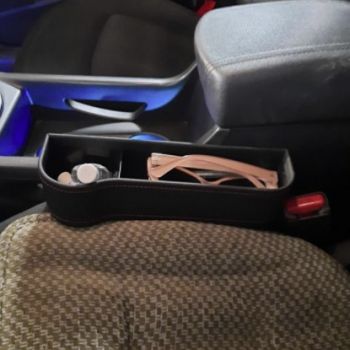 Im an Uber driver so i need space to keep my stuff in my car and this product worked wonderfully for me, it fits my vape(big one), juice and wallet even has space left for hand sanitizer. The quality is good its made of some kind of leather. What i love most about it though is the inside that u put between the seats has a soft rubber on it so it basically wont mess your seats up. I was worried about that before ordering because i live in a very hot climate but they thought about it and made an excellent product